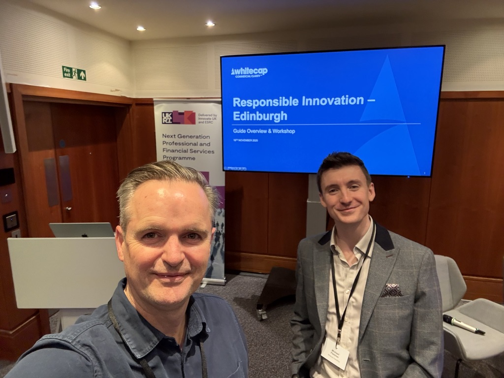 The Whitecap team was in Edinburgh on 18th November for the first in a new series of workshops delivered in partnership with Innovate UK, exploring innovation across the Professional & Financial Services sectors. Building on our previous collaboration on digital adoption, AI literacy and responsible innovation, this programme aims to deepen understanding and stimulate practical ideas that can support the sector’s future growth.